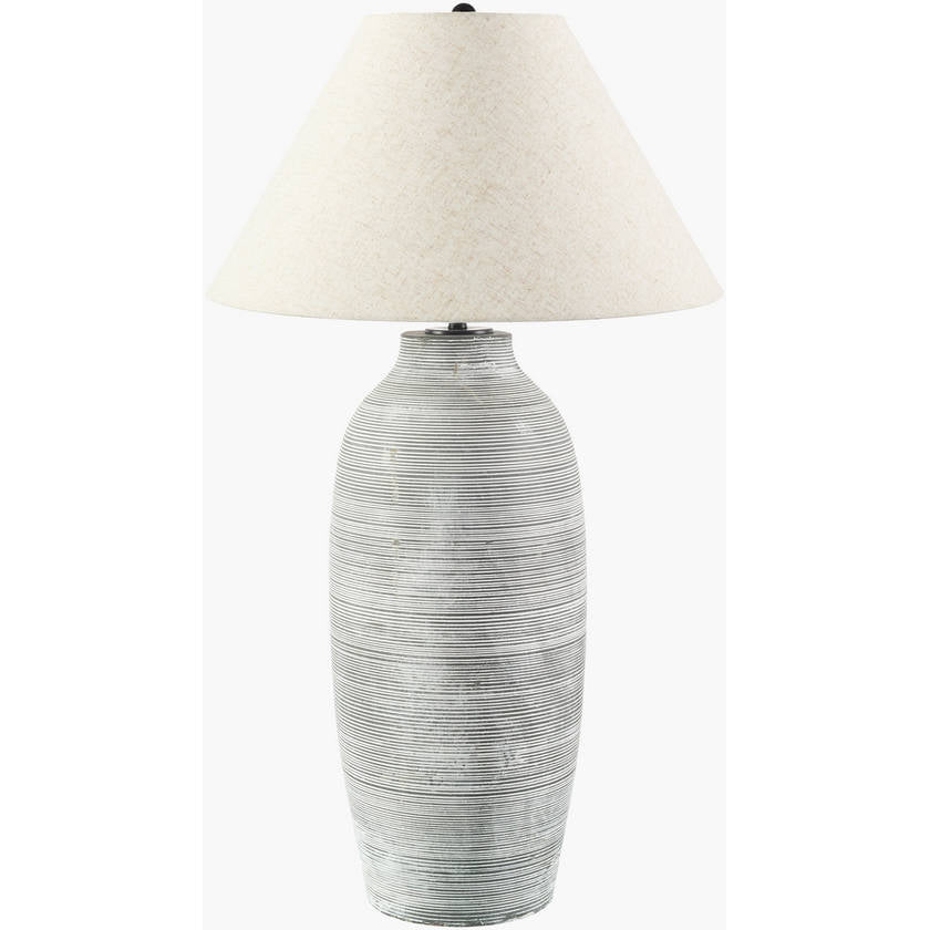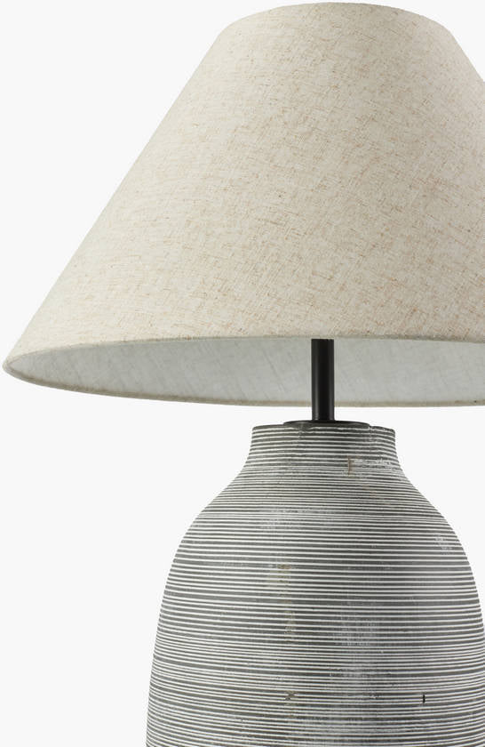 - Material: Body: Cement; Shade (Outside): Linen, Linen; Shade (Inside): Linen, Plastic; Finial: Resin