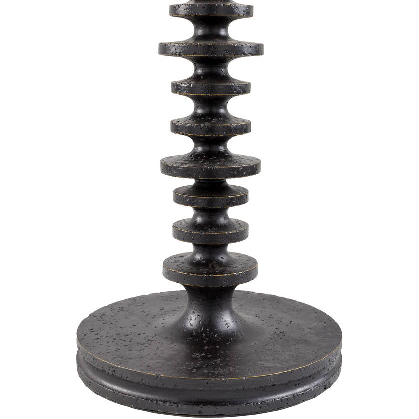 - Colors: Body: Black; Base: Black; Shade: White; Finial: Black; Harp: Metallic - Brass; Cord: Translucent