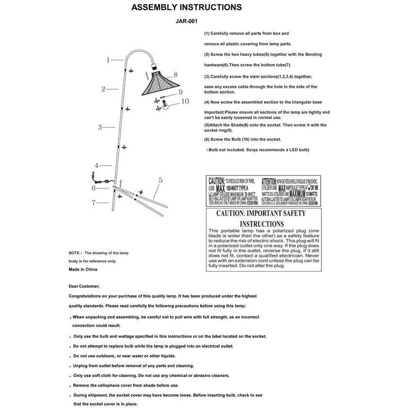 - Colors: Body: Black; Shade: Tan; Cord: Translucent
