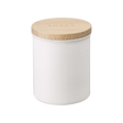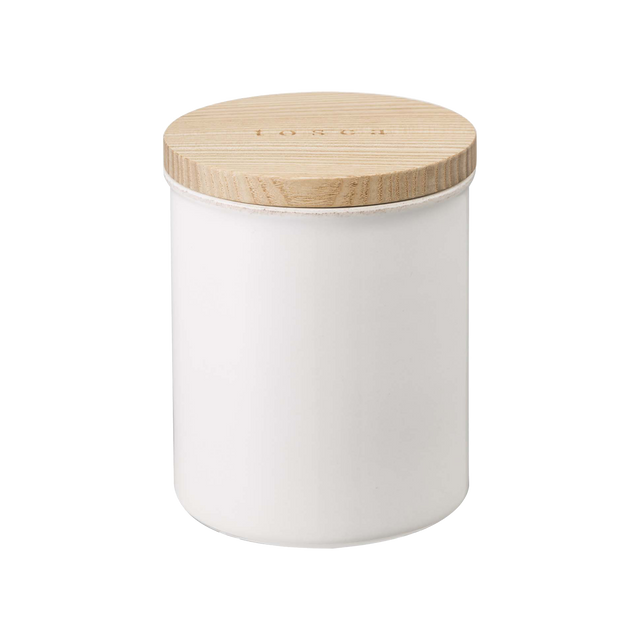 A simple ceramic storage canister for your pantry or countertop. The wide opening and wooden lid provide easy access to dry goods inside. Each lid is lined with a silicone gasket, making the canisters airtight. A perfect solution for storing everything from coffee beans or tea to salt, sugar, and other everyday pantry items.