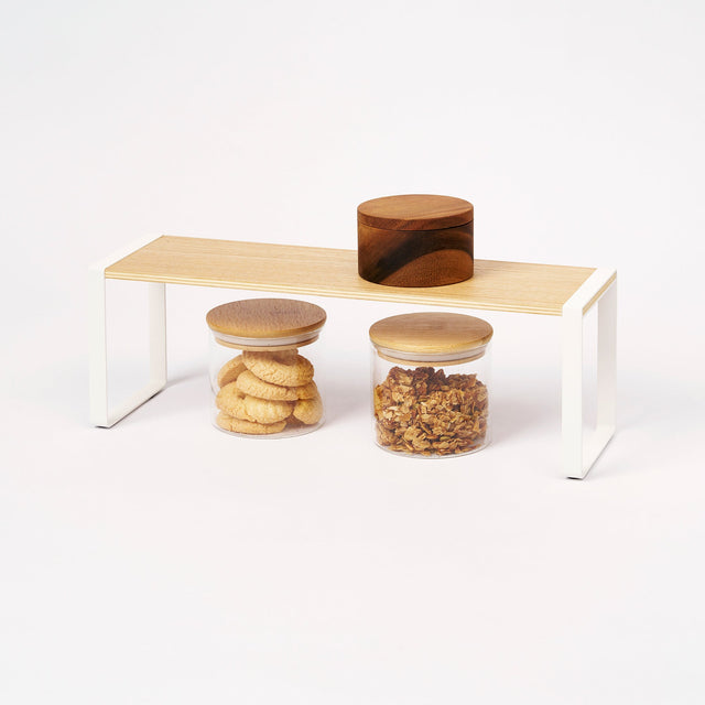 Sturdy, stout, and stylish. Slim enough to fit inside a cabinet and stylish enough to jazz up your countertop, this freestanding shelf will add some much-needed storage and organization to your kitchen. Don’t be surprised if you find yourself finding uses for this shelf all over your home. We’ve even seen it used as bookends, and a laptop stand!