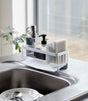 A splash-free zone. Neatly store sponges, scrubbing tools, and dish soap bottles in this spacious and sleek holder. The open steel frame not only lends a clean and modern aesthetic, but also keep items dry along with the self-draining tray. Sink-side maintenance just got that much easier.