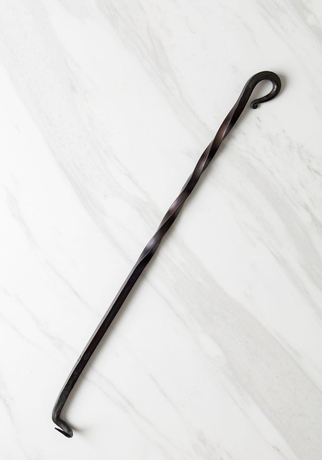 Forged from solid bars of carbon steel, Copper State Forge steak flippers are designed with comfort, style, and functionality in mind. Each steak flipper features a hand forged reverse twist at the handle and a beautiful forged open circle end for easy hanging. The curved and pointed end of the flipper adds convenience to rotating steaks, chicken, and pork chops on the grill.