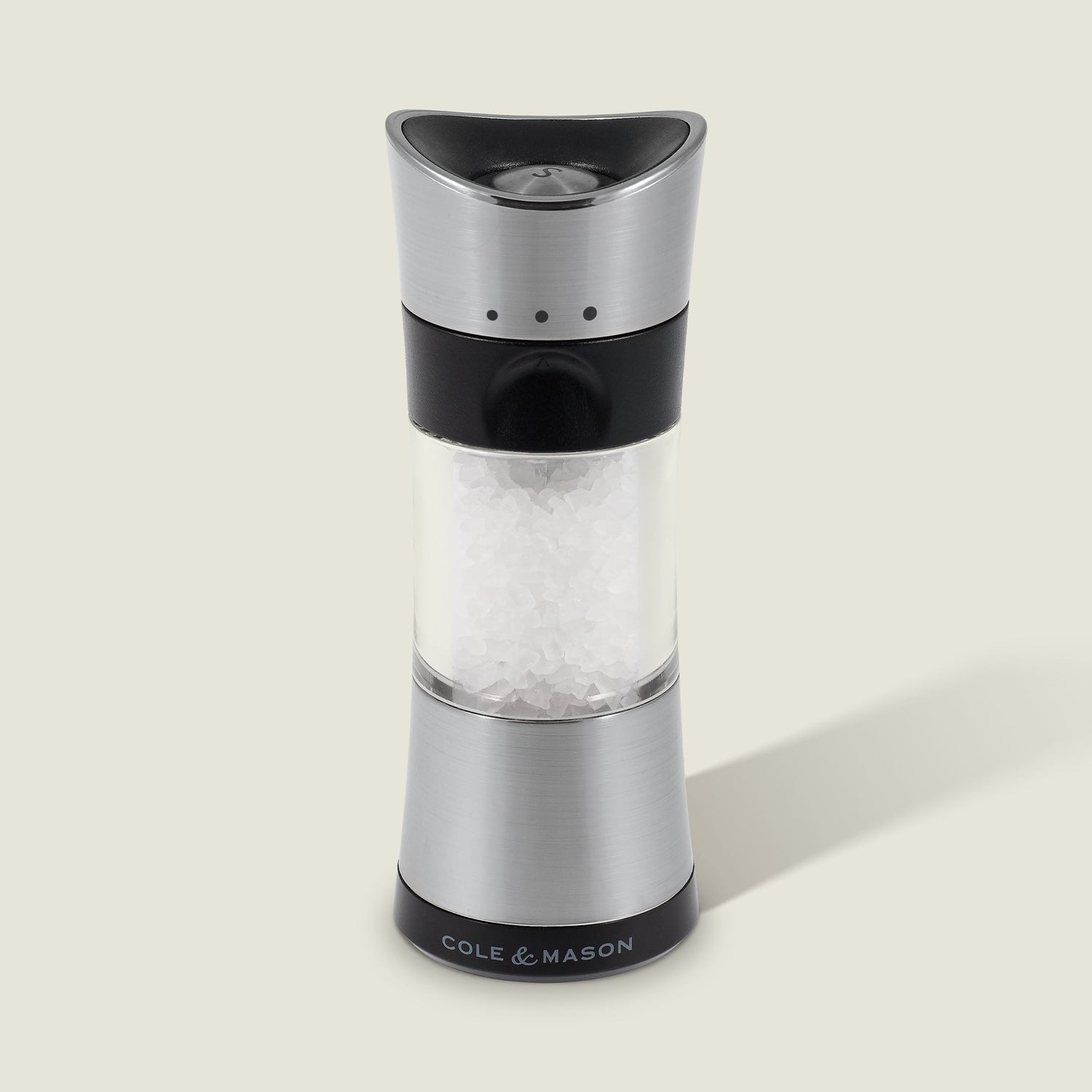 - Conveniently select between 5 preset grind levels for Pepper and 3 preset grind levels for salt