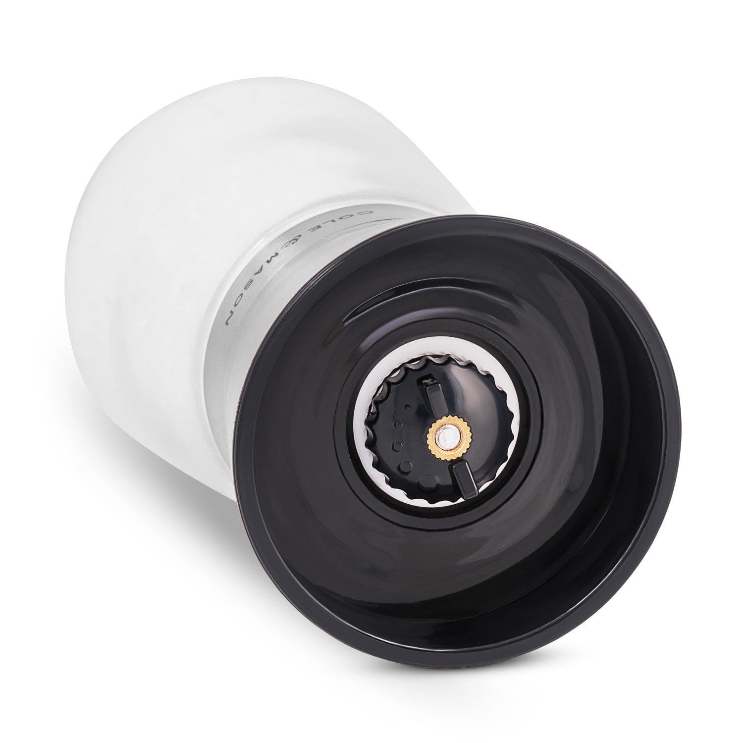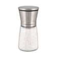 A sleek and stylish set of contemporary salt and pepper mills that have the mechanism at the top ensuring that kitchen worktops, cupboards and dining tables stay clean and mess free. Easy to use; simply pick up, turn upside down and twist to start grinding. The knob covering the mechanism has been designed to be extra long so you can easily reach it to adjust the grind from fine to coarse. The clear glass body ensures you will always have visibility of how much salt or pepper is in your mills. The wide base makes refilling easy and mess free.