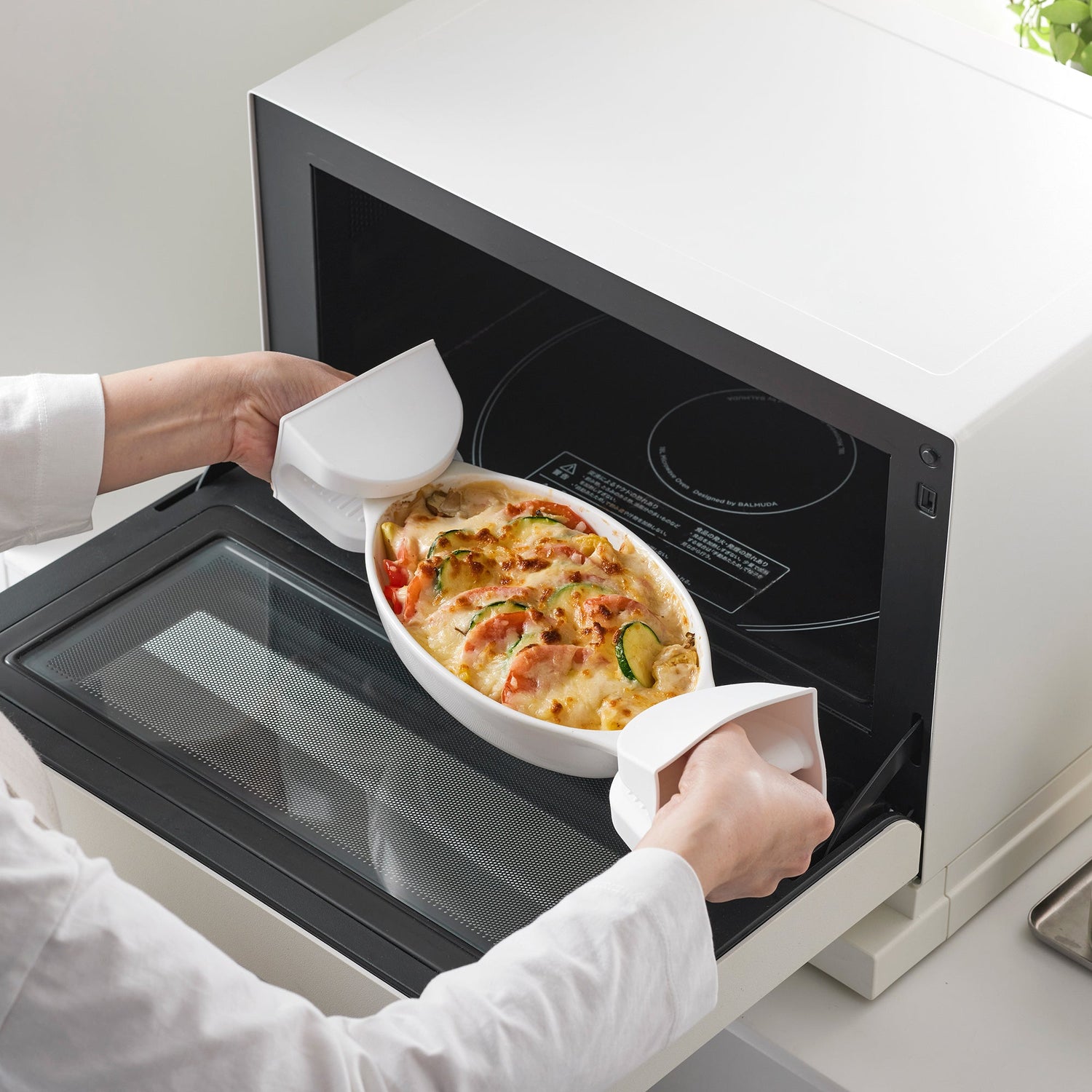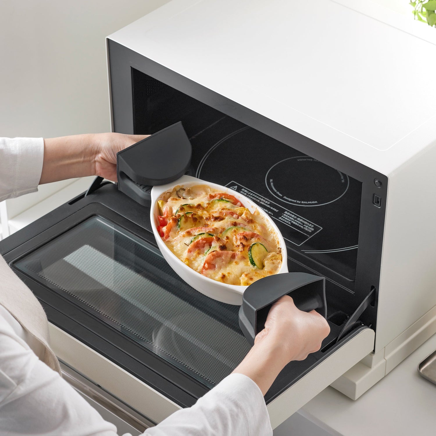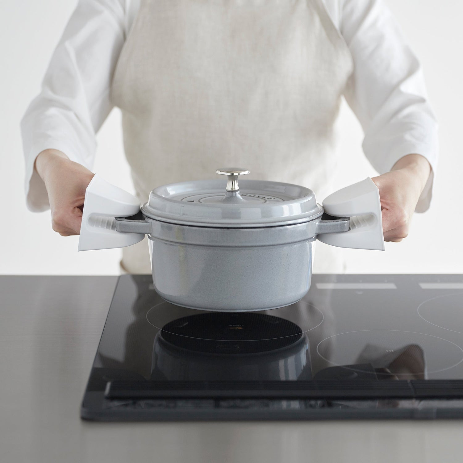 For when your dishes are hot, hot, hot Protect your hands from hot pots and pans with these sleek silicone pot holders. Made of thick, insulating silicone, the pot holders keep your hands safe and give you a firm no-slip grip on your high-temp item. Conveniently store on any magnetic surface. Attach to a range hood, kitchen panel, oven door or the refrigerator door so the mitts are always within reach when you need them. Dishwasher safe!