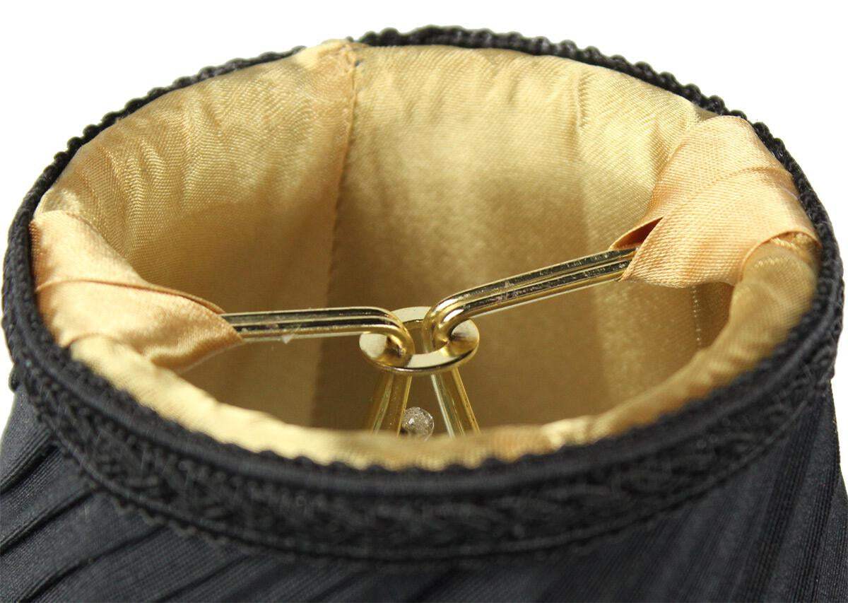 These clip-on candelabra lampshades are designed for convenience and style. They feature a gold satin lining that not only adds a luxurious touch but also enhances the light diffusion, creating a warm and inviting ambiance. The dimensions of each shade are 3" at the top, 5" at the bottom, and 4" in slant height, making them the perfect size for small candle (torpedo, bullet, or flame) bulbs. Please note that they are not compatible with standard Edison bulbs.
