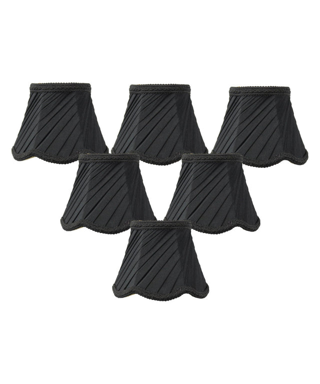 5"W x 4"H Set of 6 Pleated Scallop Clip-on Candelabra Lampshade Black Fabric