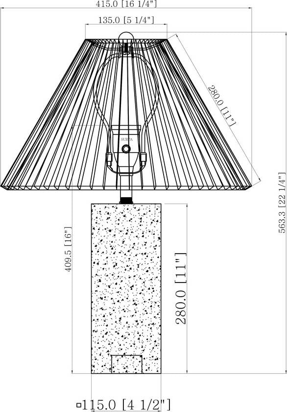 - Material: Shade (Outside): Linen; Shade (Inside): Polystyrene; Finial: Iron
