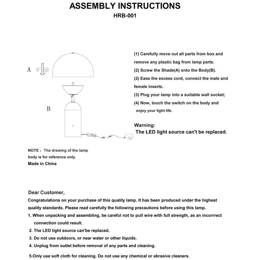 • Colors: Body: Black; Base: Black; Shade (Outside): Black; Shade (Inside): White; Cord: Black
