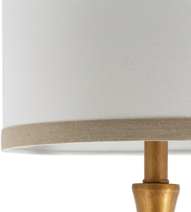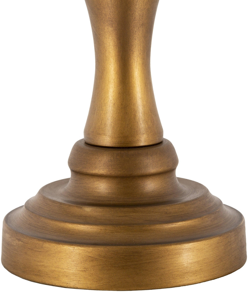 The Diex Modern Table Lamp has a white top made of soft polyester and a metal bottom. This metal part is not only with a golden color, but also with a self-pattern.
