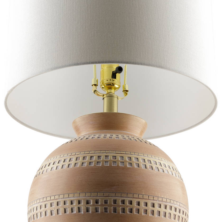 - Colors: Body: Brick; Shade: White; Finial: Metallic - Brass; Harp: Metallic - Brass; Cord: Translucent