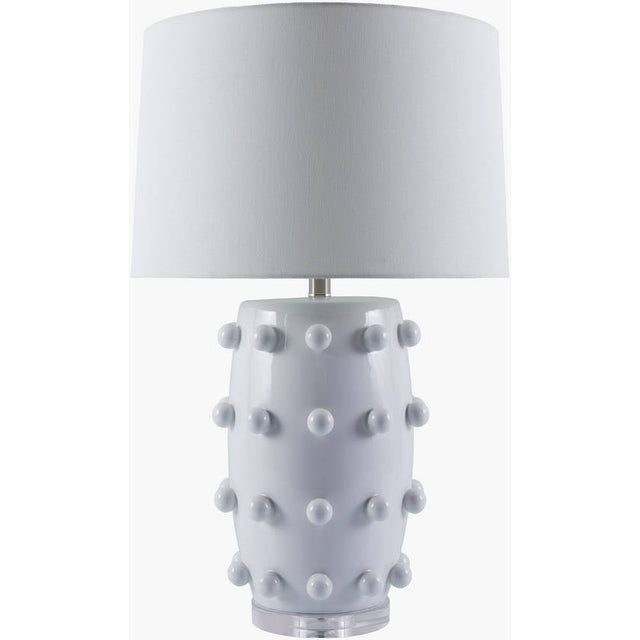 Presenting the Geffrey accent table lamp, a splendid addition to your home decor that brings an elegant touch of tradition. Fashioned from ceramic for its body and graced with a linen shade both on the outside and inside, this lamp exudes a timeless charm. Standing at 28 inches tall, it makes a commanding yet tasteful presence in any room. The piece is crowned with an exquisite crystal finial that adds an extra dash of sophistication. The care for this enchanting piece is effortless; just wipe clean with a dry cloth to maintain its pristine look, while avoiding harsh cleaners to preserve the delicate finish. Illuminate your space with Geffrey's radiant glow and elevate your home ambiance instantly.