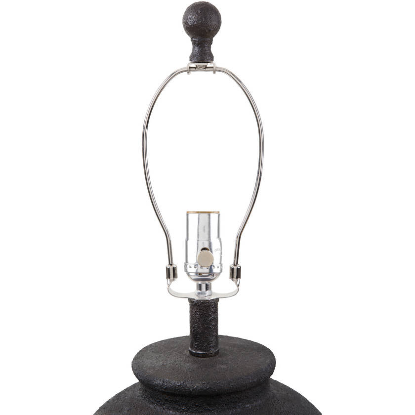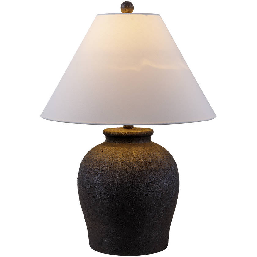 - Material: Body: Ceramic; Shade (Outside): Linen; Shade (Inside): Metal; Finial: Plastic