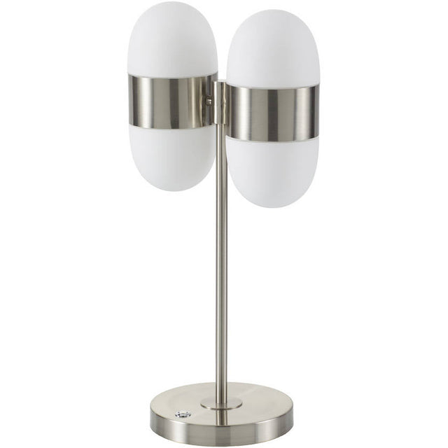 - Colors: Body: Metallic - Nickel; Base: Metallic - Nickel; Shade: White; Cord: Black