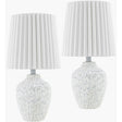 Illuminate your space with our Ladreka Collection accent table lampssold as a pair. These charming pieces are crafted with ceramic bodies, ensuring an attractive and sturdy presence in your room. The linen exterior of the shades provides a soft diffusion of light, while the polyester interior adds durability. Standing at a total height of 19 inches, they are perfectly proportioned to become statement pieces on any table or desk. These accent lamps not only deliver illuminating light but also bring aesthetic appeal to complement any decor style. Plus, caring for them is simplejust wipe clean with a dry cloth and avoid harsh cleaners to preserve their beautiful finish. Let these lamps brighten your home and add a stylish flair!