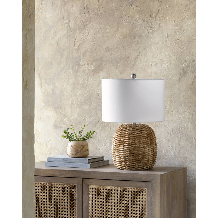 The Lindie Accent Lamp from Collection Name adds a touch of rustic charm to any room. The country cottage style lamp has a beautiful body made of rattan and metal for a timeless look that will never go out of style. The soft cotton lamp shade diffuses light for an inviting ambiance that creates a cozy atmosphere in any room. With easy care instructions, you can enjoy this accent lamp for years to come with minimal maintenance. Add the perfect finishing touch to your home decor with the Lindie Accent Lamp from Collection Name!