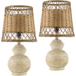 Introduce an air of elegance and charm into your home with the Marlanda accent table lamp. This captivating piece, standing at a height of 19 inches, is expertly crafted from durable resin for its body while boasting a tastefully designed shade made of Rattan. Its timeless style enhances any space it's placed in, making it an impeccable choice for both functional and decorative purposes. As easy to maintain as it is attractive, this lamp only requires a simple wipe down with a dry cloth to keep it looking its best. Embrace this beautiful addition to your home decor that seamlessly combines functionality and aesthetic appeal.
