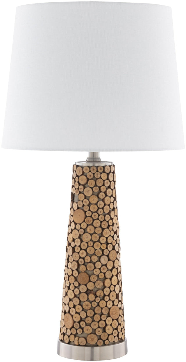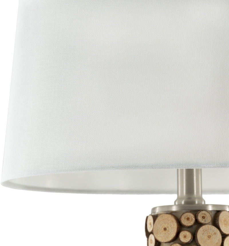 - Body: Brown; Base: Metallic - Nickel; Shade: White; Finial: Metallic - Nickel; Harp: Metallic - Nickel; Cord: Translucent Linen Shade