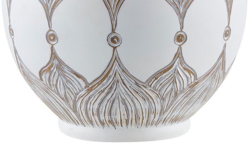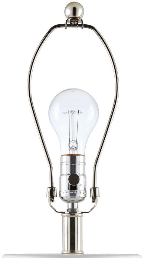 - Colors: Body: White; Finial: Metallic - Nickel; Harp: Metallic - Nickel; Cord: Translucent