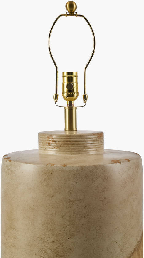 - Colors: Body: Khaki; Shade: White; Finial: Metallic - Brass; Harp: Metallic - Gold; Cord: Translucent