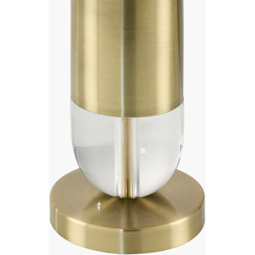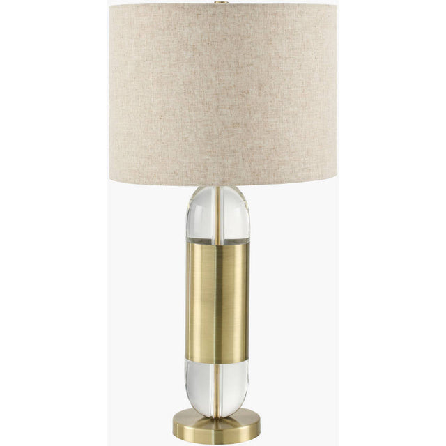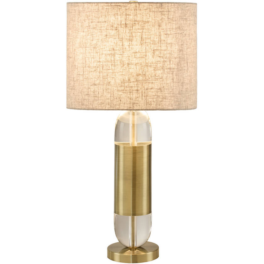 • Colors: Body: Clear, Metallic - Gold; Base: Metallic - Gold; Shade: Beige; Finial: Metallic - Gold; Harp: Metallic - Brass; Cord: Translucent