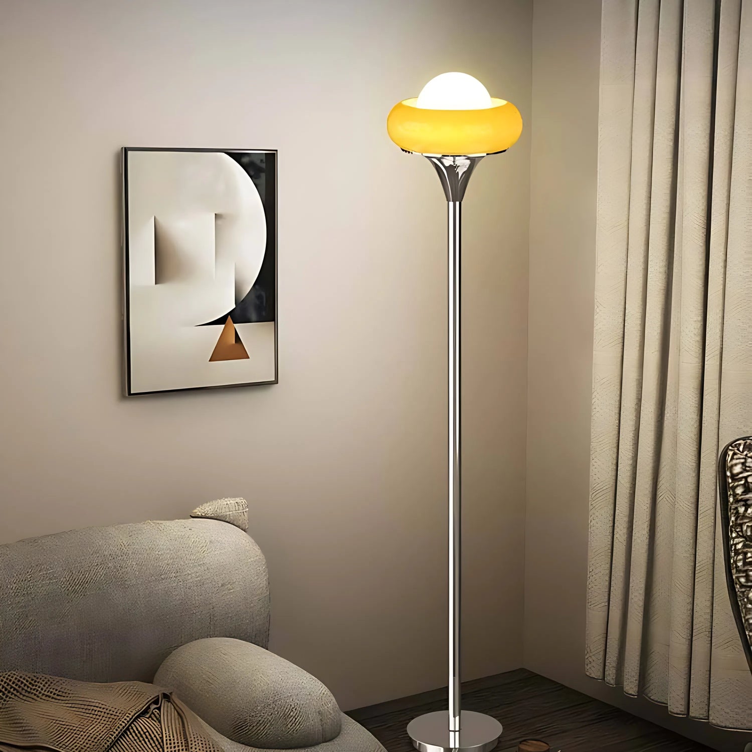 The Sunburst Glow Lamp brings the beauty of a sunrise into your home with its radiant design. Featuring a silver base that elegantly supports a glowing orange cloud-like shade, this lamp evokes the warmth and wonder of the sun peeking out from behind a morning sky. Available in both table and floor lamp options, it’s the perfect choice to illuminate your space with a touch of celestial charm.