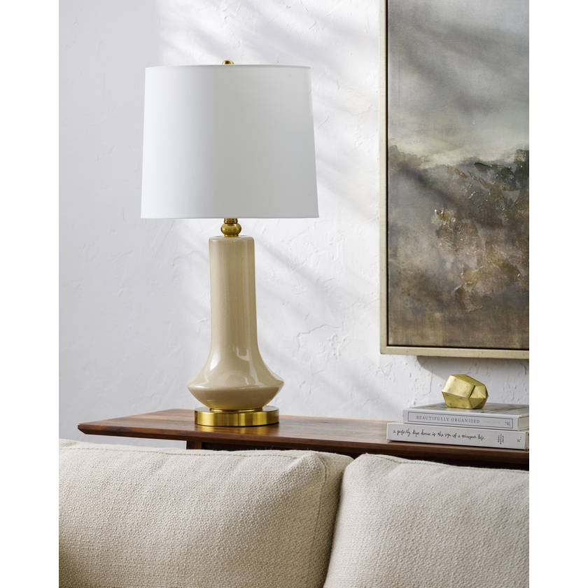 Introducing the Tedd accent table lamp, a stunning addition to any space that craves a Bohemian Global style touch. This captivating lamp is crafted from high-grade ceramic with a robust metal base and finial, providing an intriguing mix of materials that beautifully complement each other. The shade, made from premium linen, softens the light to create an inviting and cozy atmosphere in your room. Standing at 26 inches tall, this lamp is not only a source of illumination but also a statement piece in its own right. To maintain its unique charm, simply wipe it clean with a dry cloth as harsh cleaners may damage its finish. So why wait? Light up your space with the chic and stylish Tedd accent table lamp!