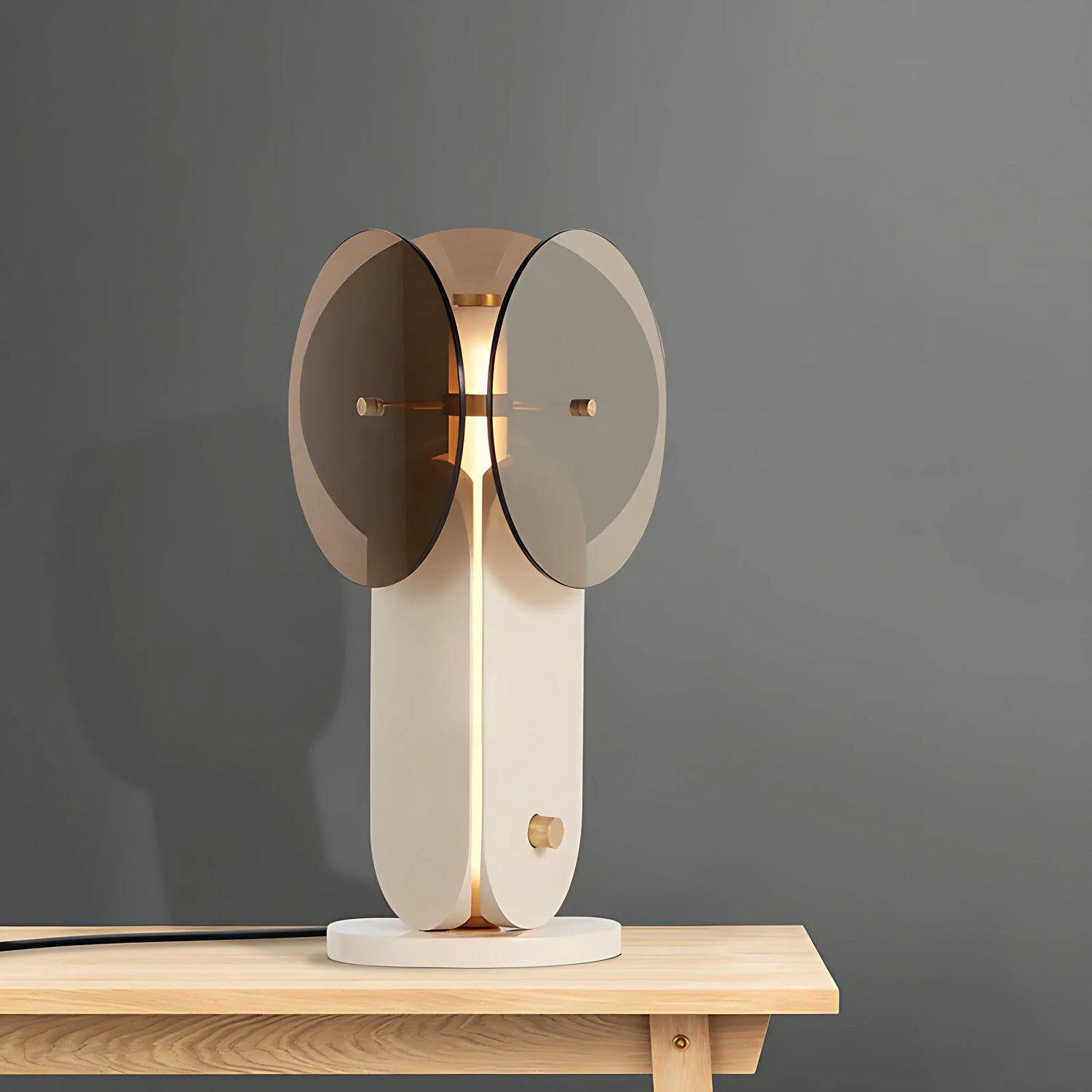 The Trilume Table Lamp is a striking blend of modern design and understated elegance. Its three-sided structure features clean, white panels that exude minimalistic charm, while a smoke-gray glass shade softly diffuses light from above, creating a cozy and sophisticated ambiance. The lamp’s geometric silhouette makes it a bold statement piece, perfect for adding character to any living room, bedroom, or office. Whether used as a reading light or a decorative accent, the Trilume Table Lamp offers a balance of form and function, elevating your space with its unique style.