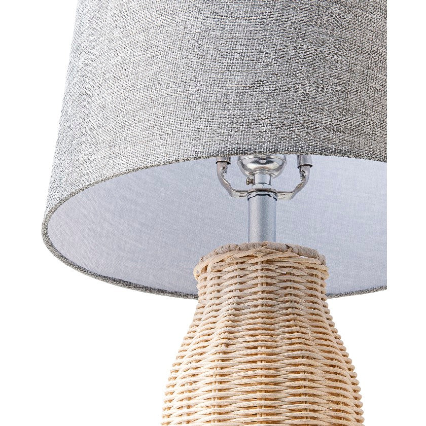 Illuminate your living space with the Tyre Table Lamp. This stylish lamp is a perfect combination of polyester, rattan, and linen materials. The beige linen lamp shade adds an elegant touch to the design while providing a warm ambient light. Standing 19 inches tall, this lamp is the ideal size for any room or office setting. With easy maintenance and care instructions of simply wiping clean with a damp cloth, you can keep it looking like new for years to come. Add classic style and elegance to your home decor with the Tyre Table Lamp!