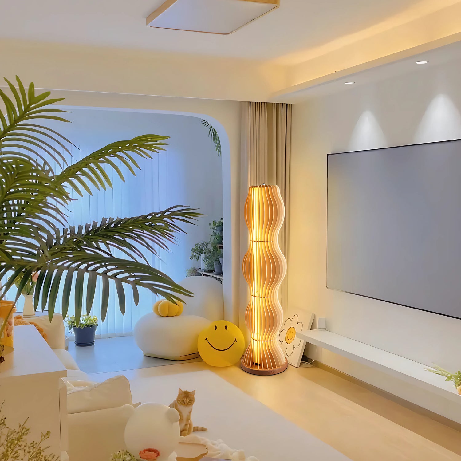 Elevate your space with this Vapor Wooden Table and Floor Lamp, a masterpiece of light luxury post-modern design. Featuring a wooden shade and stem, its warm, golden glow creates an elegant and natural ambiance, blending earthy charm with sophisticated style. Available in two sizes—a short table lamp and a tall floor lamp—it’s perfect for living rooms, clubs, or any area in need of a refined and inviting atmosphere.
