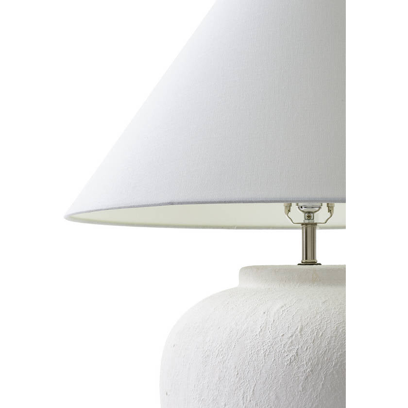 - Colors: Body: Cream; Base: White; Shade: White; Finial: Metallic - Nickel; Harp: Metallic - Nickel; Cord: Translucent