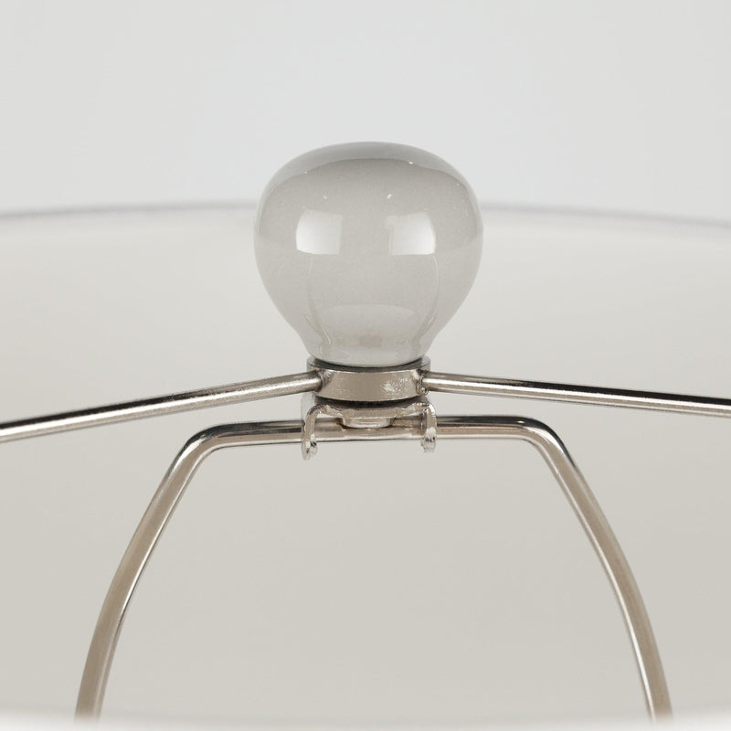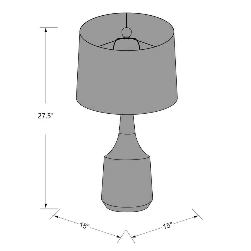 - Color: Body: Medium Gray, Tan; Finial: Medium Gray; Harp: Metallic - Nickel