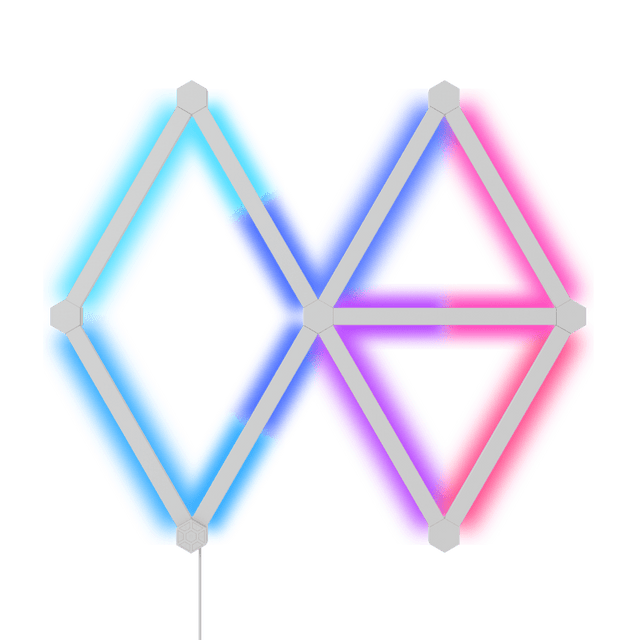 Experience stunning RGB illumination in a never-before-seen modular form factor. Smart backlit LED light bars come with everything you need to create intricate geometric designs on your wall. Choose from 16M+ colours and dynamic lighting animations that flow across your entire layout. Install by your desk setup, living room, bedroom, or any space where you want to achieve an ultramodern neon look. Packed with smart features like Rhythm Music Visualizer, Screen Mirror, and more. Install with included adhesive Mounting Tape; no additional tools required. Use alone or combine with Lines 90 Degrees for even more design possibilities!
