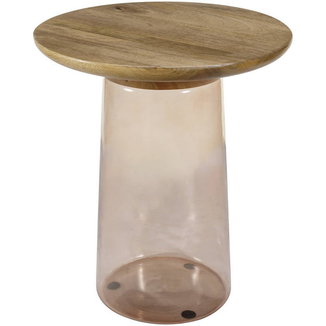 Immerse your living space in minimalist modern elegance with the Brenden End Table. Manufactured in India, this piece perfectly combines a warm mango wood top with a sleek glass base for a look that is both contemporary and inviting. The design effortlessly blends function and style, serving as a perfect spot to rest your coffee cup or display your favorite decor items. Care has never been simpler - just wipe clean with a dry cloth to maintain its brand new look. With the Brenden End Table, add an eye-catching touch of sophistication to any room in your home while avoiding the use of harsh cleaners to preserve its beautiful finish.