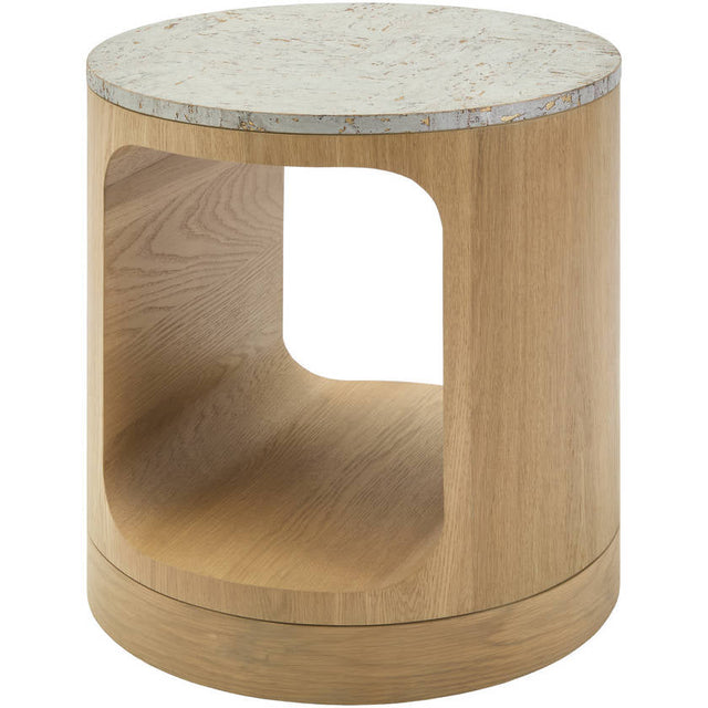 Introducing the Jaremy End Table, a stunning addition to any home decor. This unique piece boasts an exquisite cork veneer top that adds a touch of natural elegance to your space, while its robust oak base ensures stability and longevity. This end table is not only a practical furniture item for placing your coffee cup or favorite book on, but it's also a statement piece in itself, reflecting your refined taste. Made with precision in Vietnam, this table requires minimal maintenance; simply wipe it clean with a dry cloth to keep it looking pristine. Avoid harsh cleaners which could compromise the finish. The Jaremy End Table seamlessly combines functionality and style - the perfect choice for anyone seeking an attractive yet durable furniture piece for their living room or lounge area.