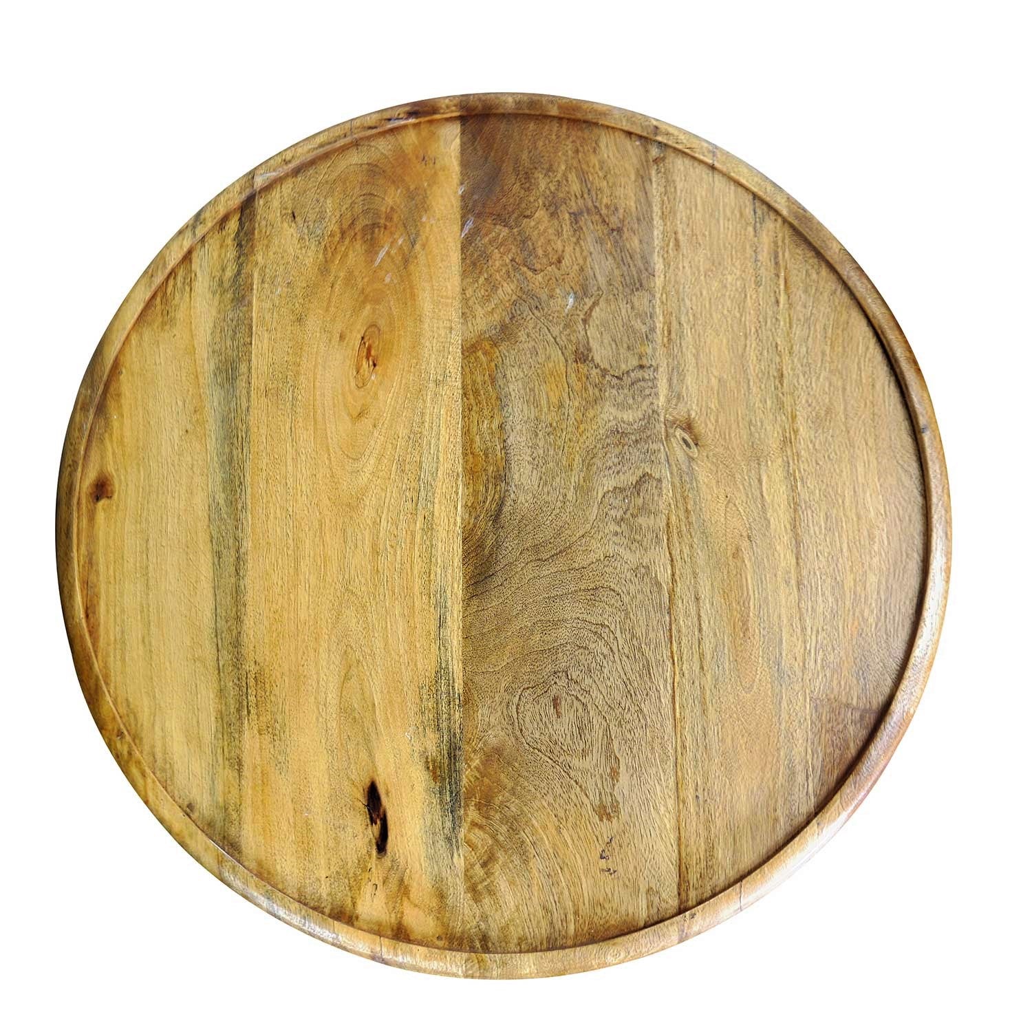 This farmhouse style round end table is a perfect statement piece for your living room with its eclectic detailing. This mango wood construction is sourced sustainably contributing to the natural distressed finish. The 24 inches height of this reclaimed coffee table makes it suitable to be placed on the porch and entryway as a foyer table where you can showcase seasonal blooms in ornamental vases.