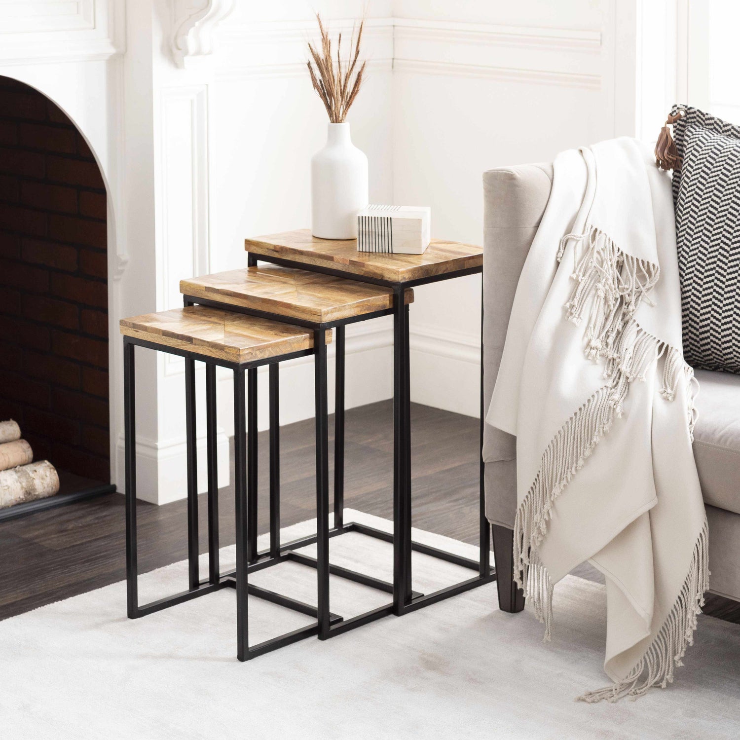 Designed with clean lines and classic materials, the Schleedorf Nesting Table Set suits a wide range of interior styles from farmhouse to transitional, and even urban lofts. The warmth of the wood top is perfectly balanced by the industrial-inspired metal frame, creating a piece that is both grounded and refined. Whether placed in a cozy living room, tucked beside a bed, or styled in an entryway, these tables bring grace and function wherever they go.