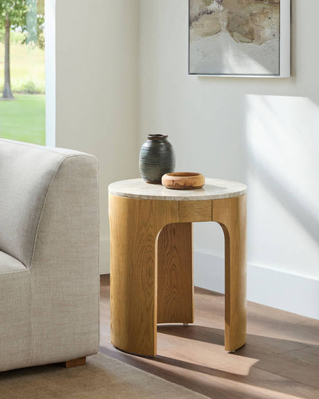 Mila Rose Beige/Brown End Table - Galey Alix x Livabliss