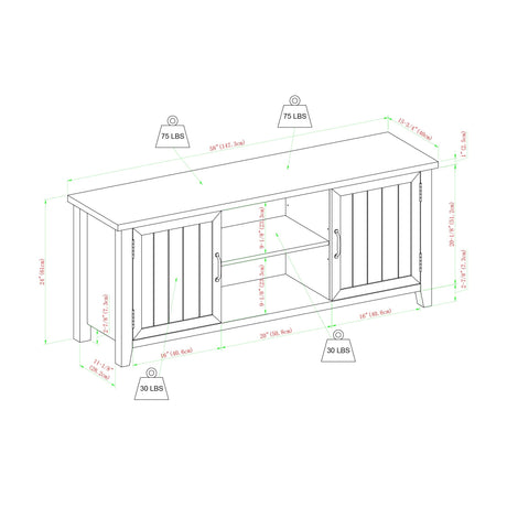 Farmhouse 58" Modern Grooved 2 Door TV Stand