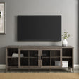 Simple and distinct, this sliding door industrial TV console offers the right amount of presence to any gathering room. An adjustable center foot provides that extra boost of central support that lets you store multiple consoles and media safely and securely in this mixed-material TV stand. Cord management and adjustable shelves allow you to organize your things however you’d like. Two mesh metal sliding doors allow you to choose which segment of this industrial media console you want exposed. This entertainment center accommodates TVs up to 80 inches.