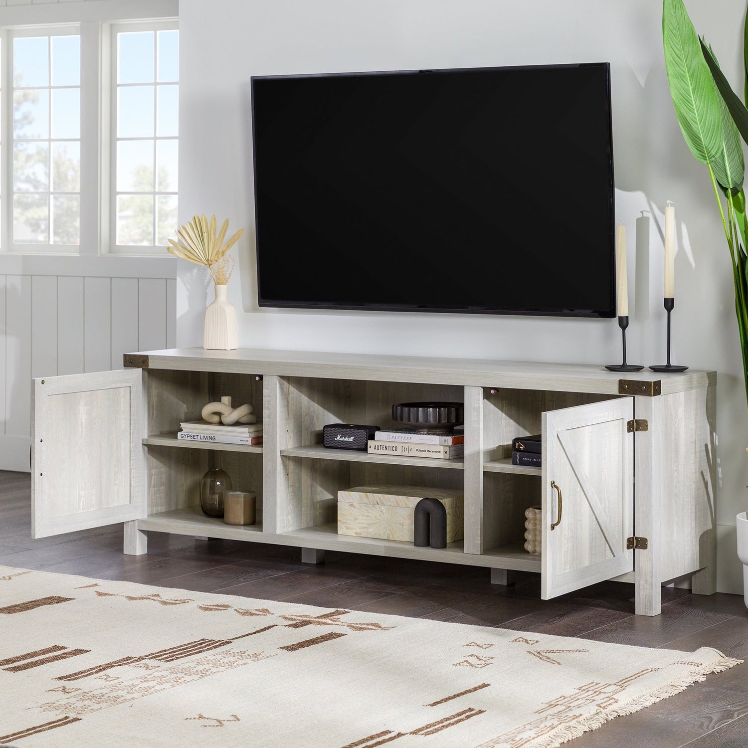 Include our rustic barn door style TV stand in your home to not only enhance the décor of your living area, but create ample storage for all of your media, accessories, and more.