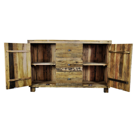 Industrial Solid Wood Credenza With Decorative Iron Hinges