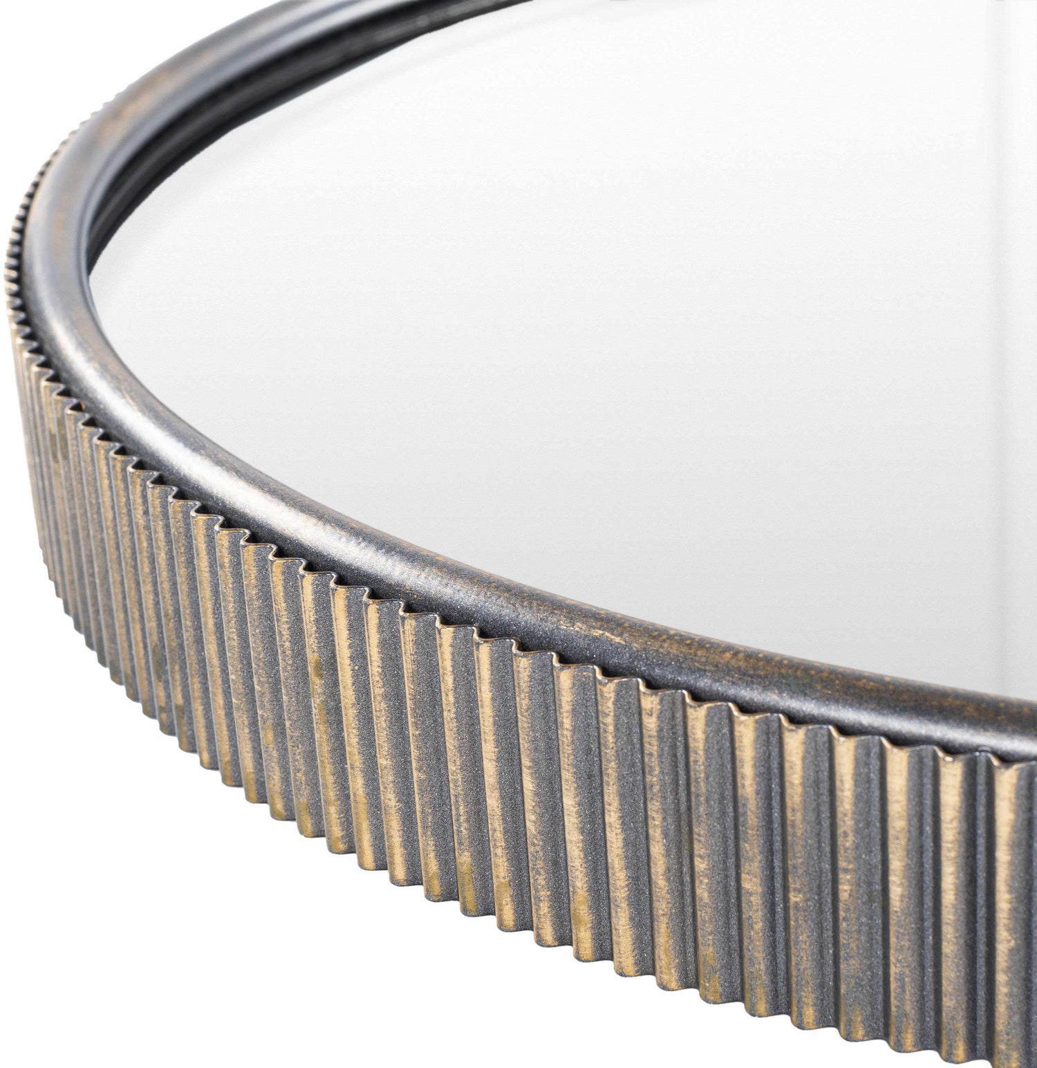 Bring refined sophistication into your space with the Batenburg Modern Wall Mirror, a stunning fusion of form and function. Featuring a round silhouette framed in gleaming gold metal and manufactured wood, this mirror offers a modern update on a timeless design. Whether used as a focal point in your entryway, a chic addition to your living room, or a luxurious touch in your bathroom, this piece reflects both light and style with effortless grace.