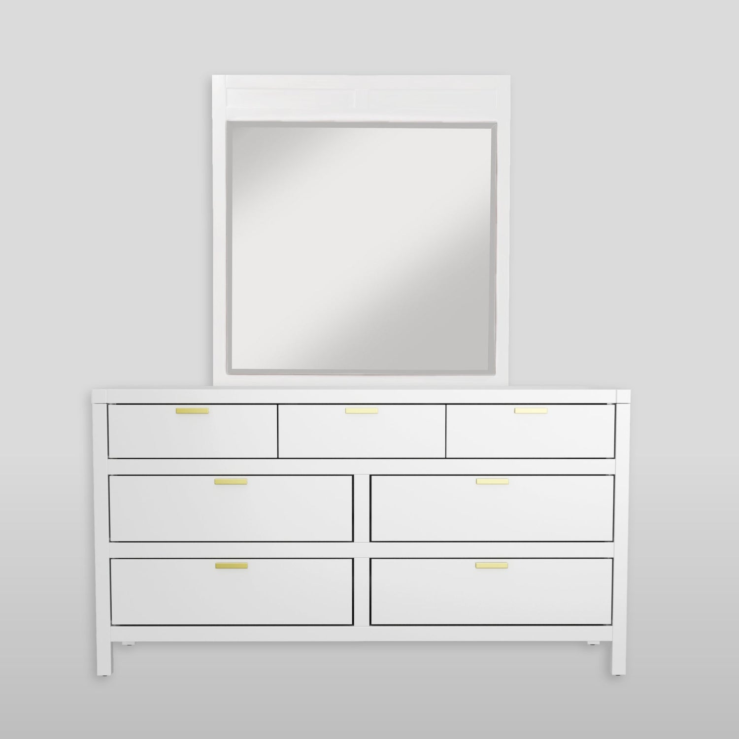 Made from hardwood solids, the Carmel Mirror completes your contemporary bedroom setting. This matching piece attaches to the dresser. The beveled glass adds a touch of class to your room. Coordinates with other pieces from the Alpine Furniture Carmel bedroom collection sold separately.