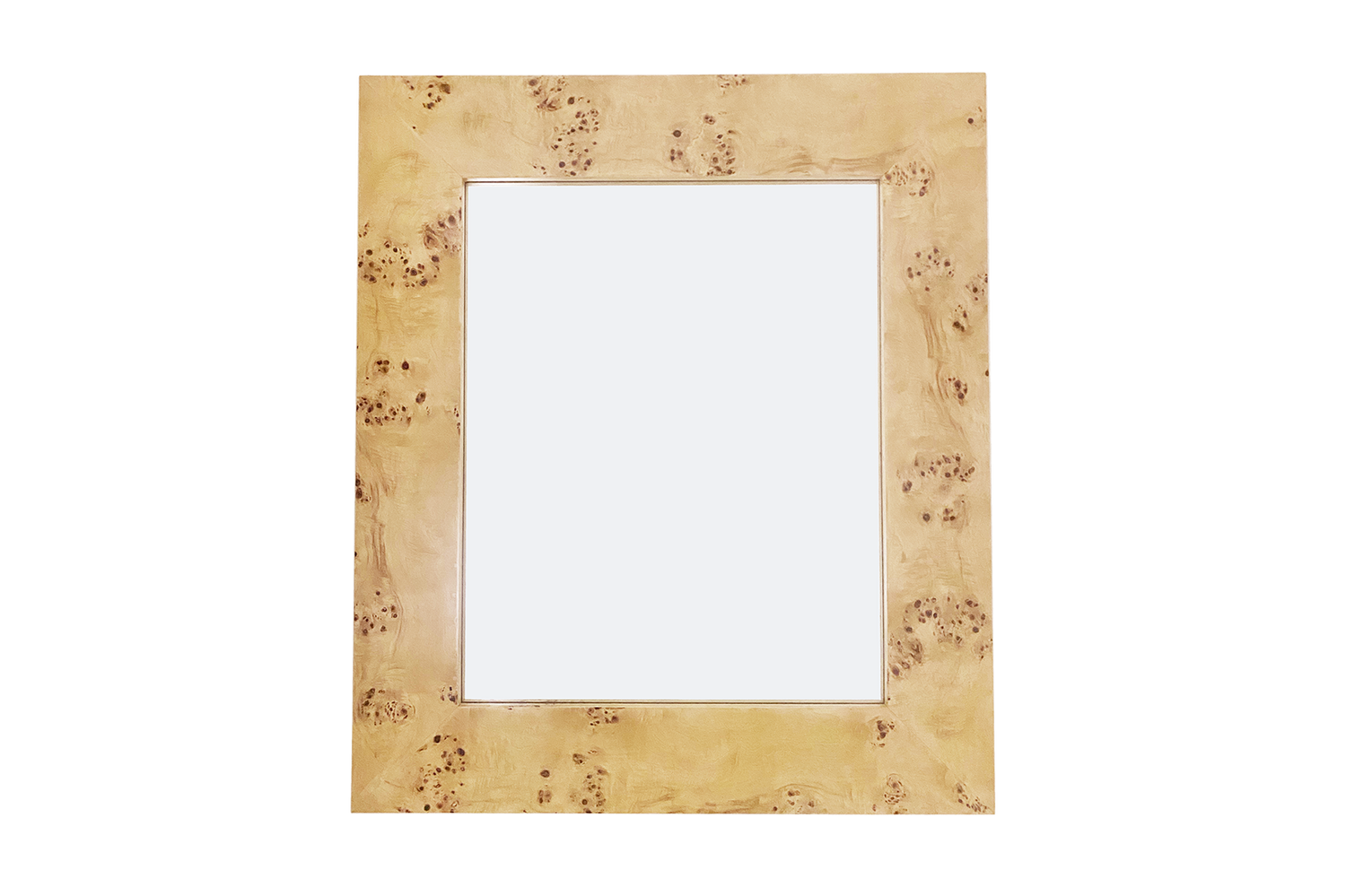 With its rectangular frame and richly patterned burl wood veneer, the Chloe Burl Mirror brings warmth, texture, and character to the wall. The chunky silhouette makes it a true statement piece, while the mappa burl adds organic depth through its natural variations in tone and grain.