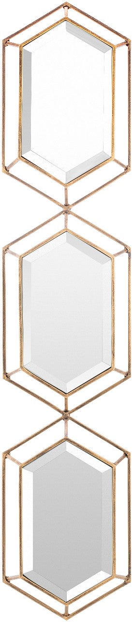 Add a bold statement and a touch of luxury to your space with the Ellmau Modern Wall Mirror. With its striking specialty shape and sleek gold metal frame, this mirror is more than just a reflective surface; it's a work of art. Designed for modern interiors, it seamlessly blends function with high-end design, becoming the perfect accent for entryways, living rooms, bedrooms, or bathrooms.
