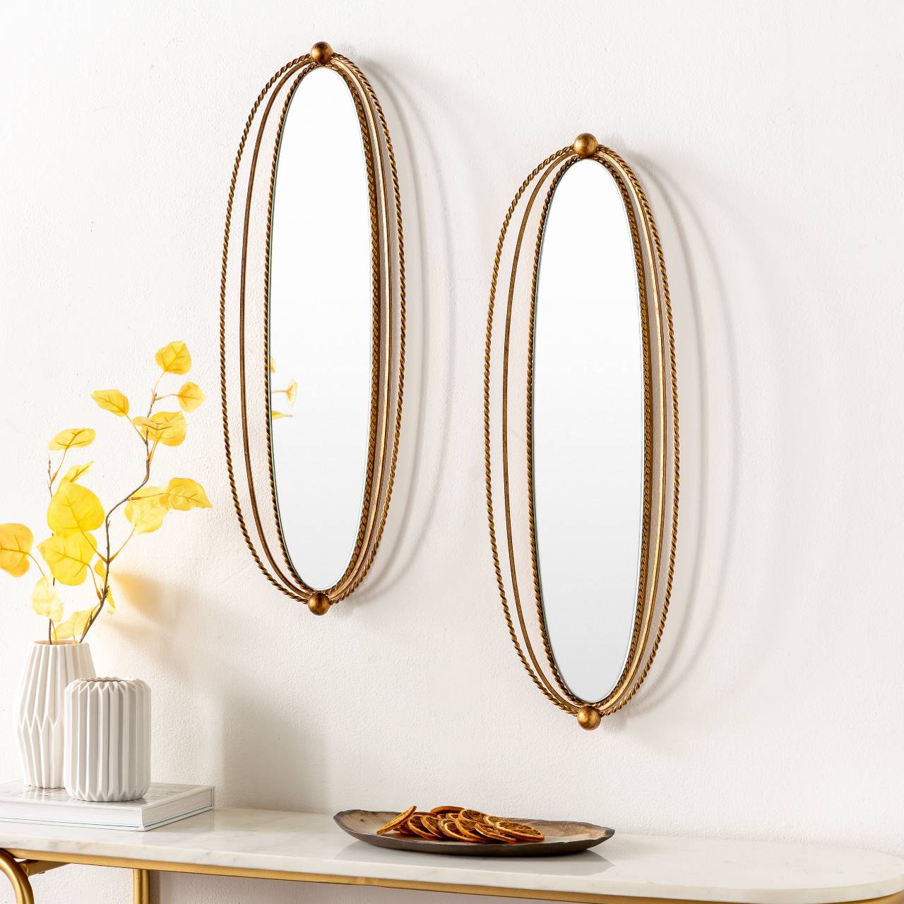 The Gasen Modern Wall Mirror stands out with its braided metal frame, giving the classic oval mirror an unexpected twist. The hand-painted gold finish enhances its visual depth while reflecting light beautifully, making even compact areas feel more open and inviting. This mirror is more than just functional—it’s a statement piece designed to impress.