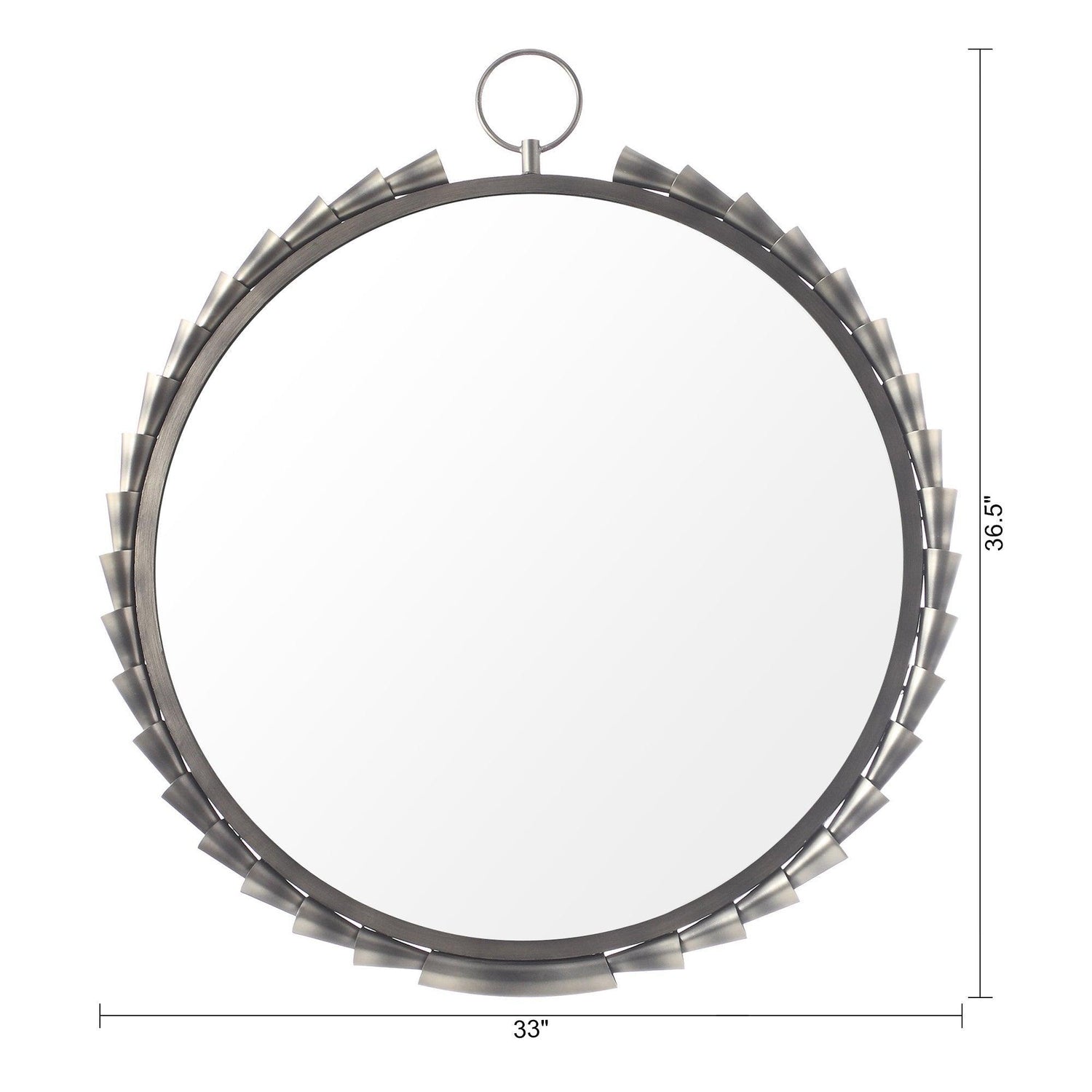 The sunburst gray mirror is 33 inches wide and perfectly combines old handcrafted edges with modern style. The round frame perfectly accentuates the radiant iron rays. Whether in the countryside or a busy city, this mirror is a must-have for your home. Suitable for any decorating style of your home. Hallways, living rooms, bathrooms, etc. are all perfect choices for using it.