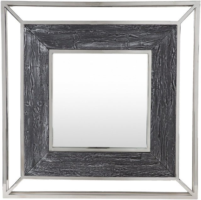 Elevate your living space with the Heukelum Modern Wall Mirror, a masterpiece of contemporary design that promises to revitalize your decor. Crafted with an enduring presentation of the modern form, this mirror seamlessly blends robust materials with an artistic aesthetic. Its square shape is beautifully framed by a striking combination of charcoal manufactured wood and sleek metallic silver metal, creating a captivating visual depth that draws the eye. More than just a reflective surface, the Heukelum Modern Wall Mirror is a focal point, designed to infuse your home with sophistication and a touch of industrial chic. Made with precision in India, it embodies quality and a unique design sensibility.